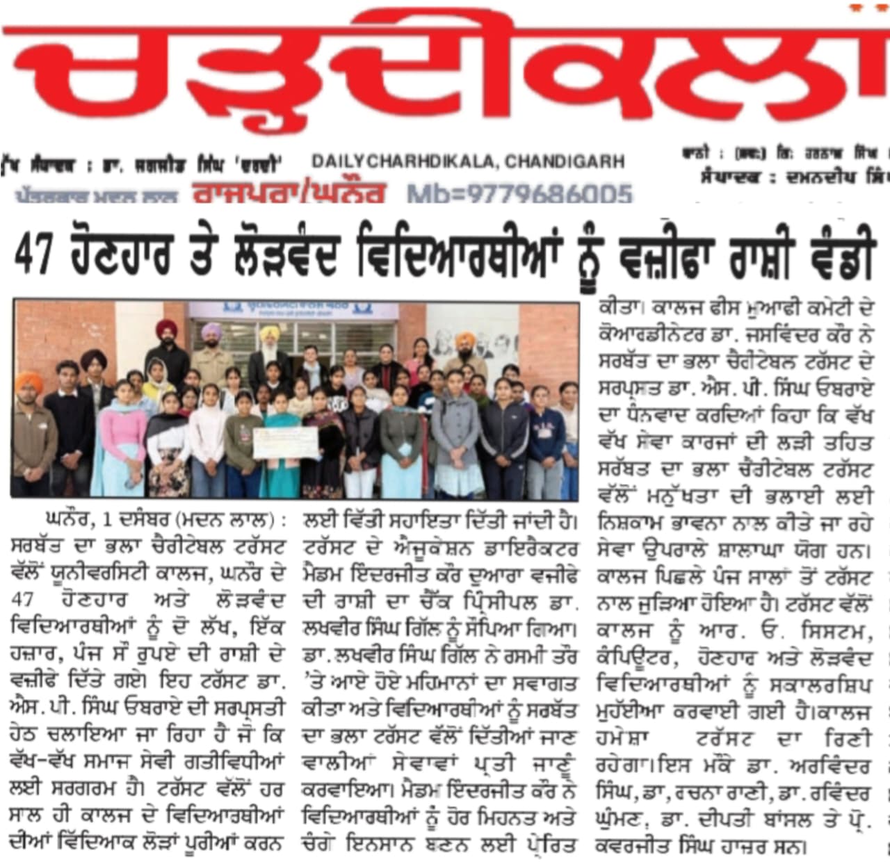 เจชเฉเจฐเจฟเฉฐเจธเฉเจชเจฒ เจฆเจพ เจธเฉฐเจฆเฉเจถ (Principal's Message)